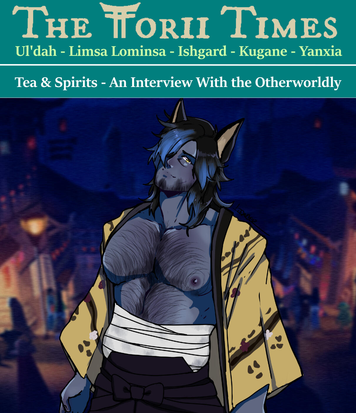 If all yall lovely readers are anything like this Viera, Spirits are not something you think of that often. Voidsent? Sure. Loads of them about these days. But spirits? Well for all you readers out there, the Torii Times gave me the perfect chance to learn all about them for yall. Today’s interview was with Mister Tetsuro Wulf, the leader and founder of the Free Company Night Raid. NightRaid is a Free Company established in the Far East, whilst primarily identified as an organization of bounty hunters and mercenaries, they employ a wide array of individuals that emerge from all walks of life seeking for work and home.Mister Wulf was a truly wonderful host to both myself and my partner, Miss Nyieth Mewrilah, with some rather interesting insights into a field of study I shall be diving deeper into on my own personal time. But without further rambling, allow me to present you all with our conversation.Both myself and my partner were shown into a beautiful tea room and served fantastic tea.“So then, Mister Wulf, why don't we start with a bit about you, and then about this place as well?"TW: “That sounds good to me. To properly introduce myself.. I'm Tetsuro Wulf, the head and founder of NightRaid, both the Network and the Free Company. Prominently, I'm known as a mentor n' spiritual counselor to many, and a samurai to heart. In the Far East, specifically Hingashi n' Othard, I'm known as the Okami Deity of Balance. Such a title comes from the fact that a huge part of my job alongside the bounties, hunts, and odd jobs provided.. would be the assurance and exposure of Yokai co-existing amongst mortals within our world.""So I read about that in my briefing, but it is definitely not a term even I hear too much. In your own words, what is a Yokai? Are they similar to Voidsent? Different? If so, how?"TW: "“Yokai” is the term used for most supernatural entities and spirits referred to within the Far East. Looking back at the origin of yokai centuries and centuries ago.. The people once described it as; 'when something strange happens and the mortal mind can not understand it, it was said to have been caused by a yokai.' Different regions throughout the Far East described such vastly differing yokai that would spawn or.. Appear in small villages.. Towns.. Cities. Little by little, yokai became part of the Far East’s everyday life through tradition and culture. And many have come to know this term through Nightraid Network's exposure of yokai.. helping them, aiding them, understanding them, befriending them.""So its more similar perhaps to creatures like Sylphs, or Fairies, you might say?”TW: "In a way, I would say so, aye. Just as Sylphs n' Fairies are more commonly heard in other regions, Hingashi is quite aware of the presence of yokai.""I see, thank you for the clarification. So what put you in a position to handle such matters? Or to be more precise, what brought you to this line of work?"TW: "Let's see.. I'll start off by referencing that I'm not quite of this world. In fact, I hail from the realm of yokai as a Servant to what the Far East refers to as 'Kami'. Followers of a 'God' in Eorzean terms. But I've lived here long enough to develop a passion towards martial art, towards mortals, towards aiding those of this world with all that I've come to learn. This brought me into the field of being a mercenary. One of Nightraid's sayings would be 'we take the jobs others cannot take, and face the forces others cannot face'. This falling upon the fact that exposure to the supernatural, not just named 'yokai' but all over that myself and my comrades faced in many different scenarios. I wanted to create a designated 'home' for everyone to seek jobs similar to what we've experienced, gain experience and adventure, and exposure through such ways. Ultimately.. I was named to take up the mantle of my Okami Lineage, which is what we refer to in the Far East as 'Wolf'. Balance stems from the fact that throughout our regions, our realms.. there exists a Spiritual Balance. This stems from a co-existence of yokai and mortals.""I see, Mister Wulf...the Wolf. So you aim to bring that balance here as well?"TW: "Aye.. It starts with education n' exposure, in my mind. Exposure to these beings is what educates the people. And I offer seminars and advice while doing so. Seminars explaining what yokai are.. introducing them to my patrons and my community, and so forth! Plenty of yokai exist in our community, living alongside our mortal friends. They aren't just 'beasts or monsters' as they are often betrayed. They feel emotions, they eat, they struggle. There are groups known to take on 'Old Ways' where the belief is to kill or hunt ALL yokai. Just like people, there are good yokai, and there are bad yokai. But it doesn't take just one person to make that change of perspective. There have come people who have joined me on elite jobs, and people who have become my 'Sohei of Balance'. They dedicate their time n' effort towards aiding yokai that exists in the world we share together n' work alongside me, or learn from me. Really.. anyone can become one. And many strive to do the same nowadays.""Well....you sold me! But in all seriousness, because of my own studies I do tend to agree quite a bit with that ideology. Knowledge is something that should be shared, and it sounds like you not only share, but show how to apply that knowledge. If one wished to learn from you, do you have information to share with our readers as to how they may do so?"TW:"It's a good mindset to have, especially with things not many are exposed to outside of our current region.. they even exist beyond Hingashi n' Othard. Yokai that is. Just as people travel. As one tends to say.. to expose yourself to yokai, 'find them'. But lately, it seems they find /you/ first… To learn from me, the doors of NightRaid's headquarters are always welcome. Be it if you seek to visit my seminars, we post on our bulletin the time and date. Or if you're 